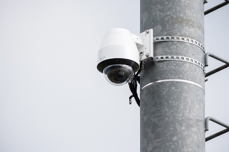 小川谷総合運動公園の照明に設置されたライブカメラ。