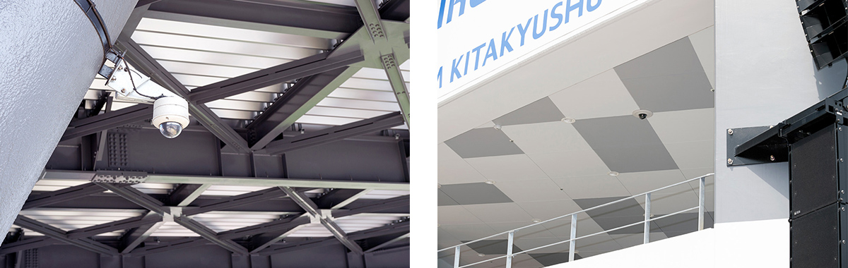リアルタイムの防犯監視や、映像記録による事件や事故の際の追跡・確認を目的に、耐塩塗装が施された屋外ドーム型フルHDネットワークカメラN-C3820-3などがスタジアム内に設置されている。